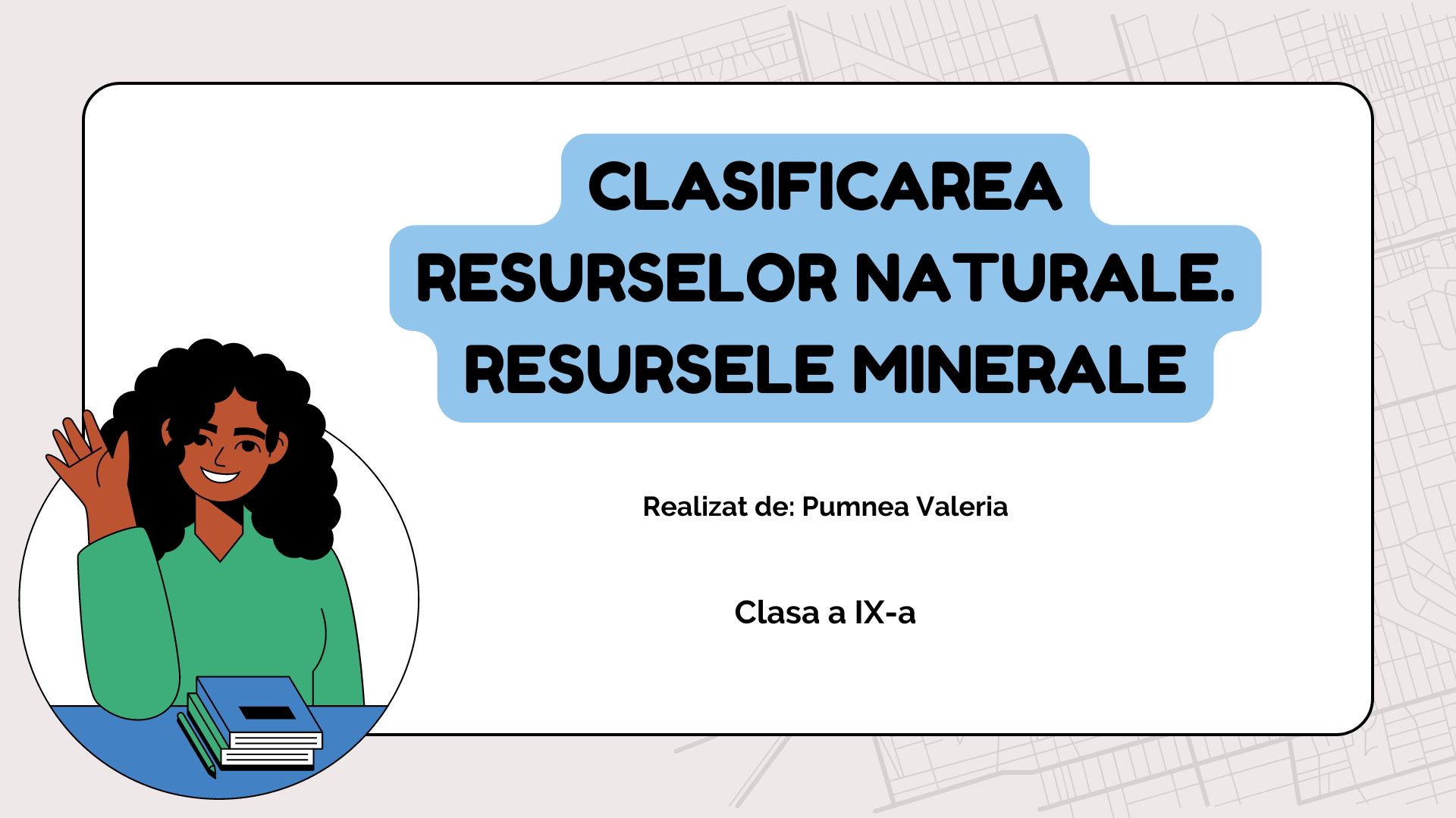 „Clasa a IX-a: Clasificarea resurselor naturale. Resursele minerale” este o prezentare în format PPTX care explică tipurile de resurse naturale și importanța lor.