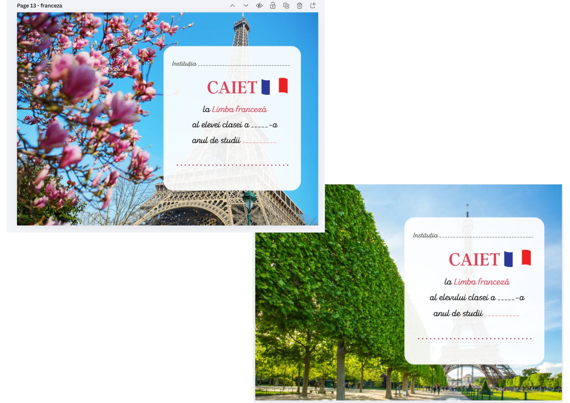 Copertă de caiet la Limba franceză, realizată pentru fată și băiat 👧👦, disponibilă exclusiv în format PDF 📄. Produsul este destinat imprimării 🖨️ și completării manuale ✍️.