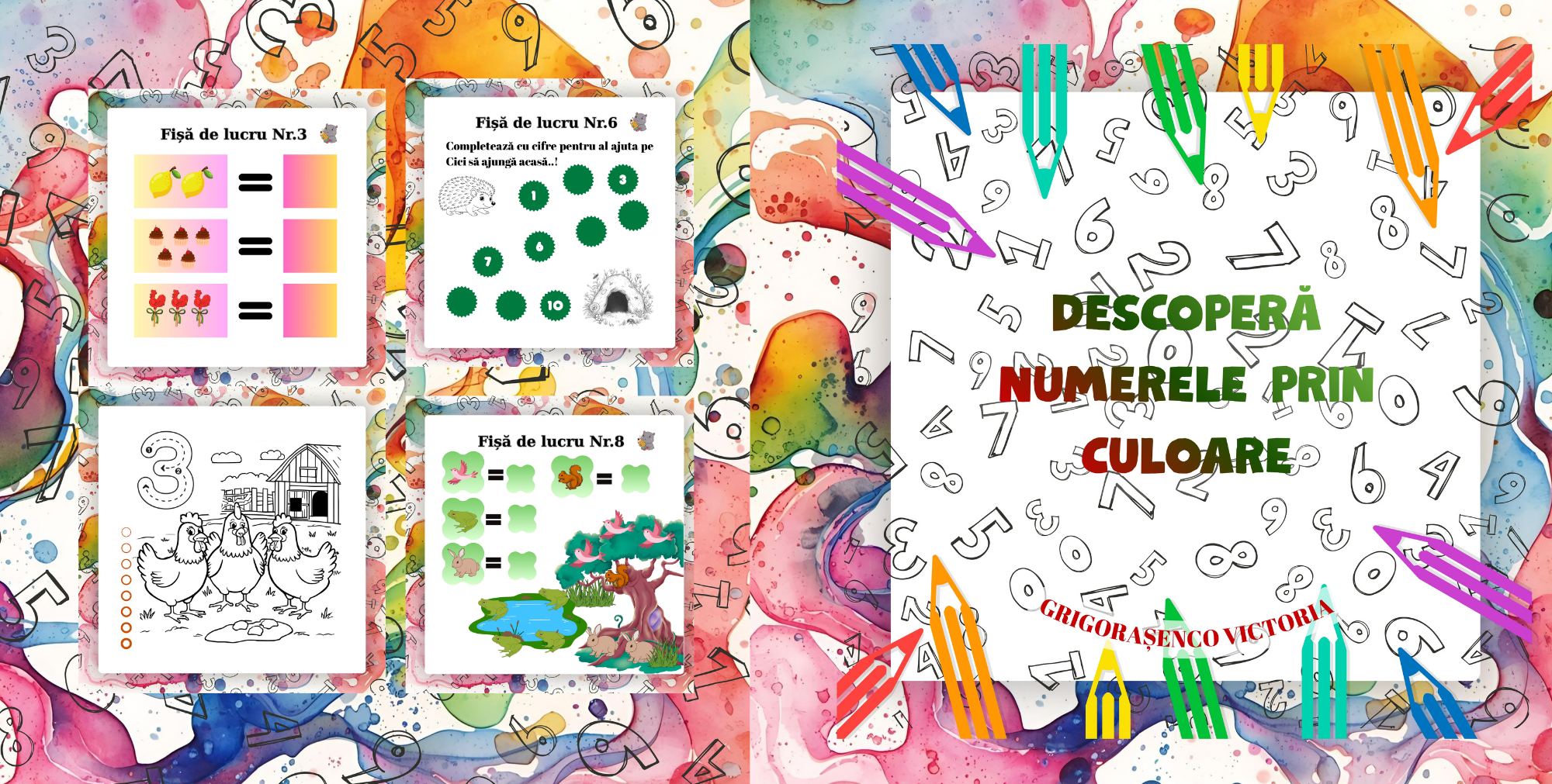 „Descoperă numerele prin culoare” este o resursă educativă concepută special pentru copiii de vârstă preșcolară, care îmbină învățarea matematicii timpurii cu bucuria jocului. Fiecare fișă de lucru este atent gândită pentru a stimula atenția, motricitatea fină și gândirea logică, oferind activități variate precum trasarea cifrelor, identificarea cantităților, completarea secvențelor numerice și jocuri vizuale atractive.