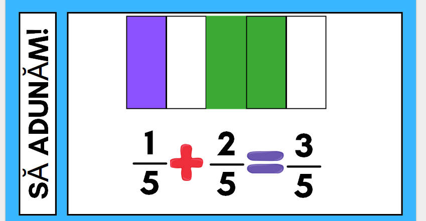 Această prezentare poate fi folosită pentru consolidarea. Elevii trebuie să intedifice fracția în baza întregului prezentat. PPT-ul mai include și tema „Adunarea fracțiiilor cu același numitor”. Sunt 46 de slide-uri, deci pot fi implicați toți elevii.