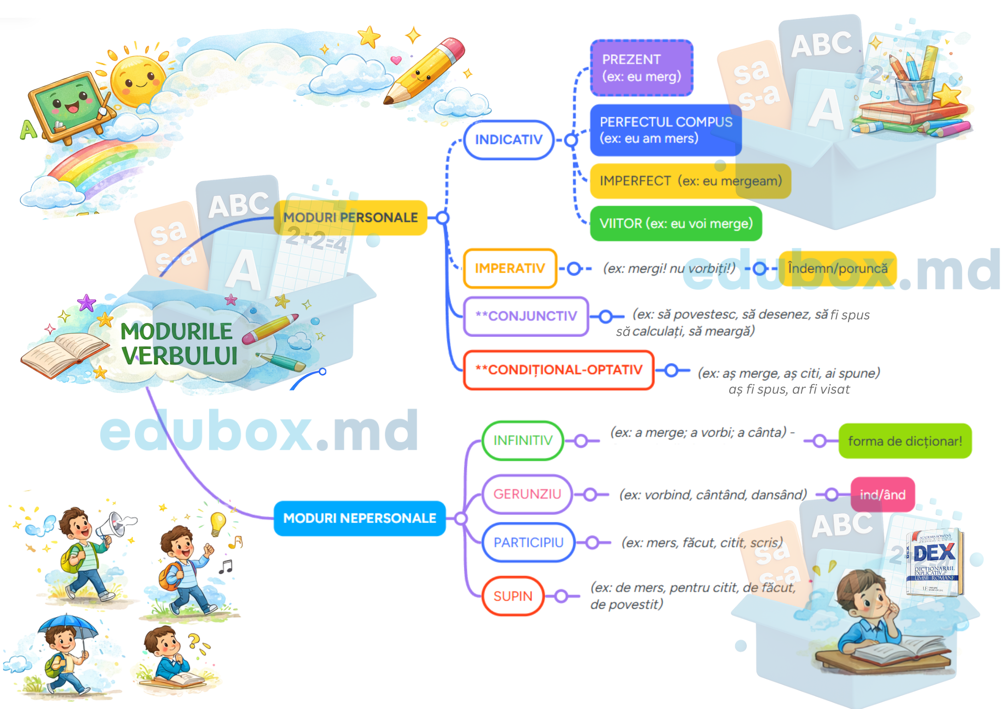 Scopul materialului este înțelegerea clară a structurii modurilor verbului, nu studiul aprofundat de gramatică.