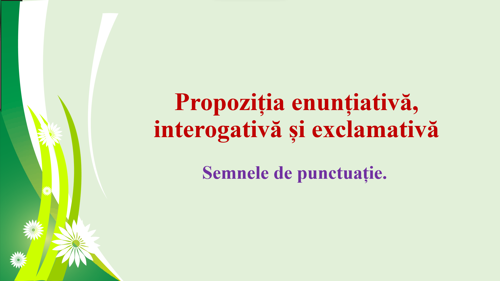LL rom. cl. a II-a, Propoziția enunțiativă, interogativă și exclamativă [fișier .PPTX]