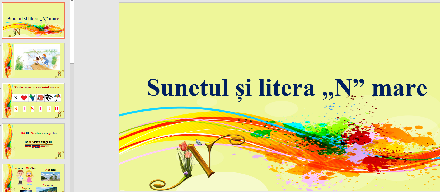 L.lit.română. Clasa I-âi. Sunetul și litera „N” mare. /N/ mare de mână [fișier .PPTX]