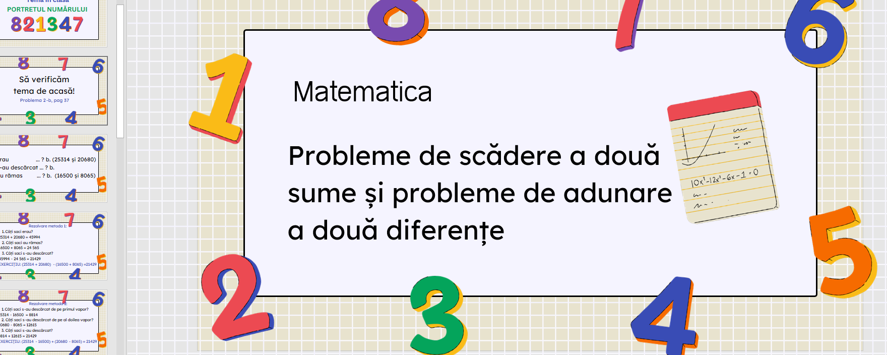 Matematica. Clasa a IV-a. Probleme de scădere a două sume și probleme de adunare a două diferențe 2
