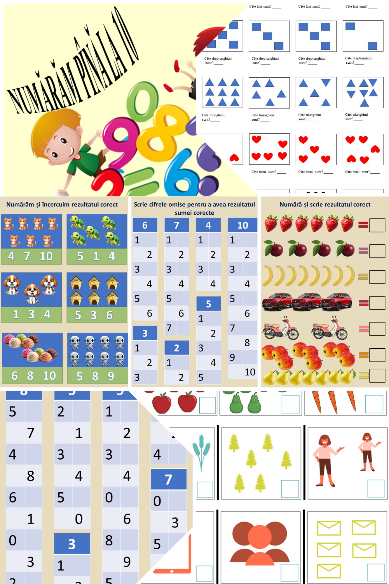 Materialul este structurat pe 7 pagini și conceput pentru vârstele 4-6 ani. Copilul v-a învăța: Recunoașterea cifrelor 0-10 și asocierea numărului cu cantitatea; Bazele adunării prin exerciții simple și intuitive; Scrierea cifrelor într-un mod independent.