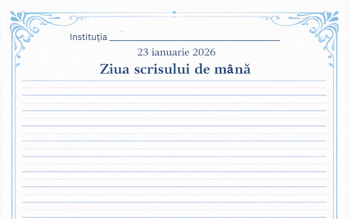 Această fișă de scriere este concepută pentru a încuraja exersarea scrisului de mână într-un mod ordonat și estetic, cu ocazia Zilei scrisului de mână – 23 ianuarie.