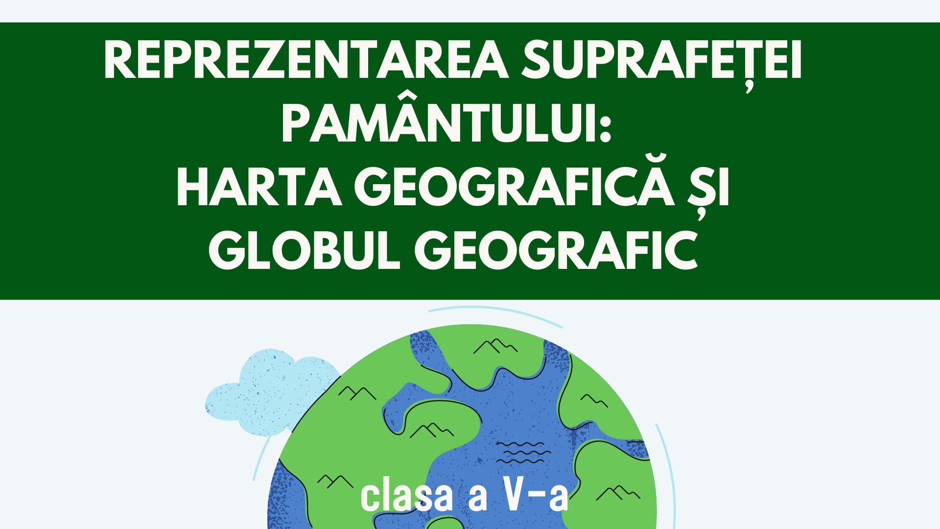 „Clasa a V-a: Harta și globul pământesc” este o prezentare interactivă în format PPTX, care introduce elevii în elementele de bază ale geografiei.