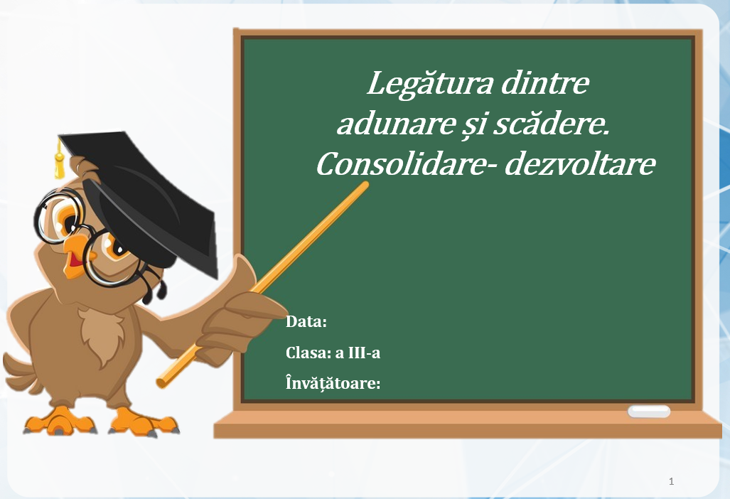 Proiectul didactic word, subiectul: Legătura dintre adunare și scădere. Consolidare- dezvoltare, matematica, clasa a III-a