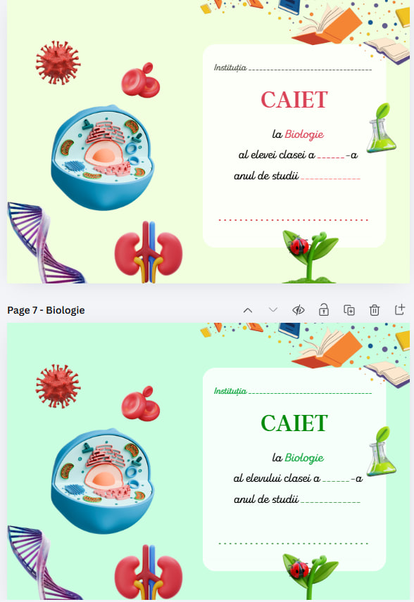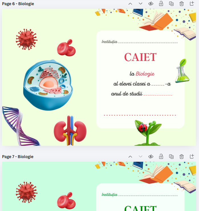 Copertă de caiet la Biologie, realizată pentru fată și băiat 👧👦, disponibilă exclusiv în format PDF 📄. Produsul este destinat imprimării 🖨️ și completării manuale ✍️.