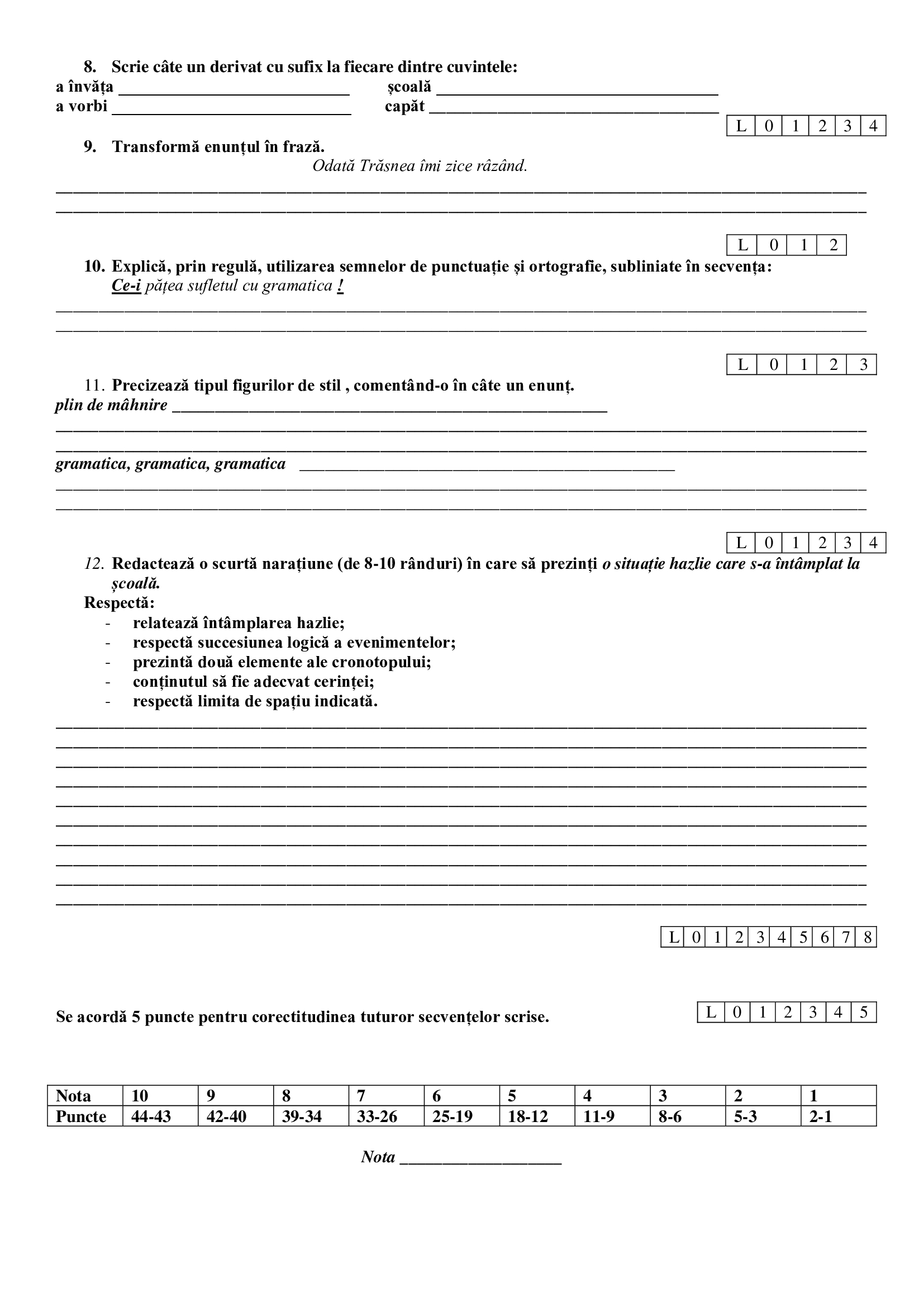 Evaluare inițială la limba și literatura română, clasa a VIII-a