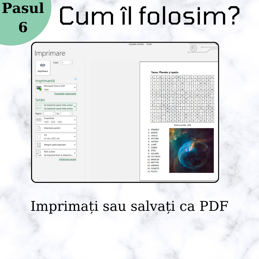 Acest fișier Excel este ideal pentru profesori, părinți și elevi, facilitând crearea de materiale educaționale interactive și distractive. Fie că este utilizat în clasă sau acasă, acesta contribuie la dezvoltarea vocabularului și a abilităților de recunoaștere a cuvintelor, oferind în același timp o modalitate plăcută de a învăța.