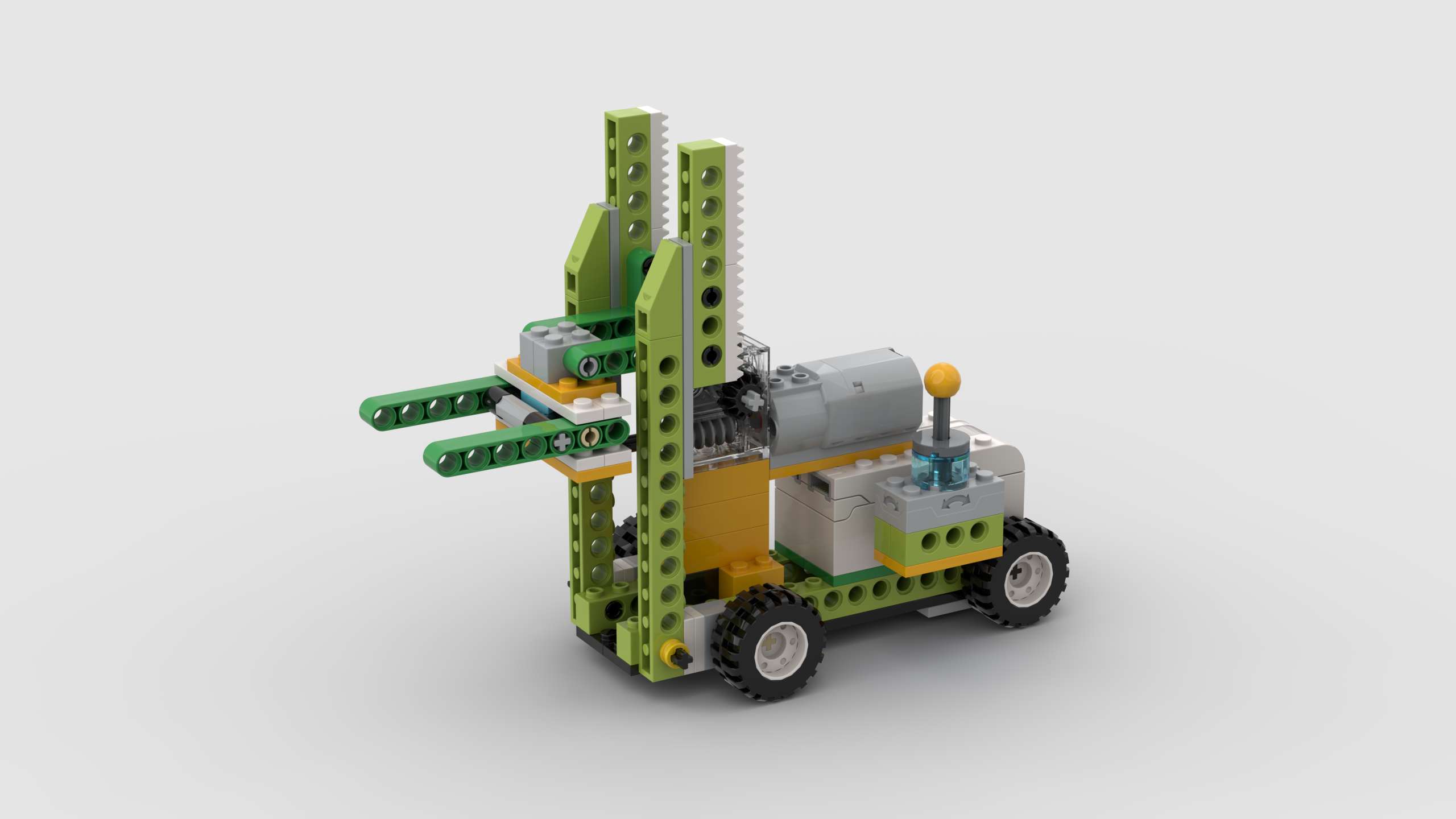 Creăm un stivuitor care poate ridica și coborâ marfa de pe rafturile depozitelor. Acesta este realizat dintr-un set LEGO Education WeDo 2.0 Core Set (45300). Instrucțiunea conține 35 de foi.