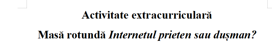 Acest document digital în format .docx conține scenariul unei activități extracurriculare dedicate Zilei Europene a Siguranței Online, eveniment marcat la nivel mondial. Materialul propune o masă rotundă cu tema „Împreună pentru un internet mai bun”, unde elevii sunt încurajați să dezbată atât avantajele, cât și riscurile mediului online.