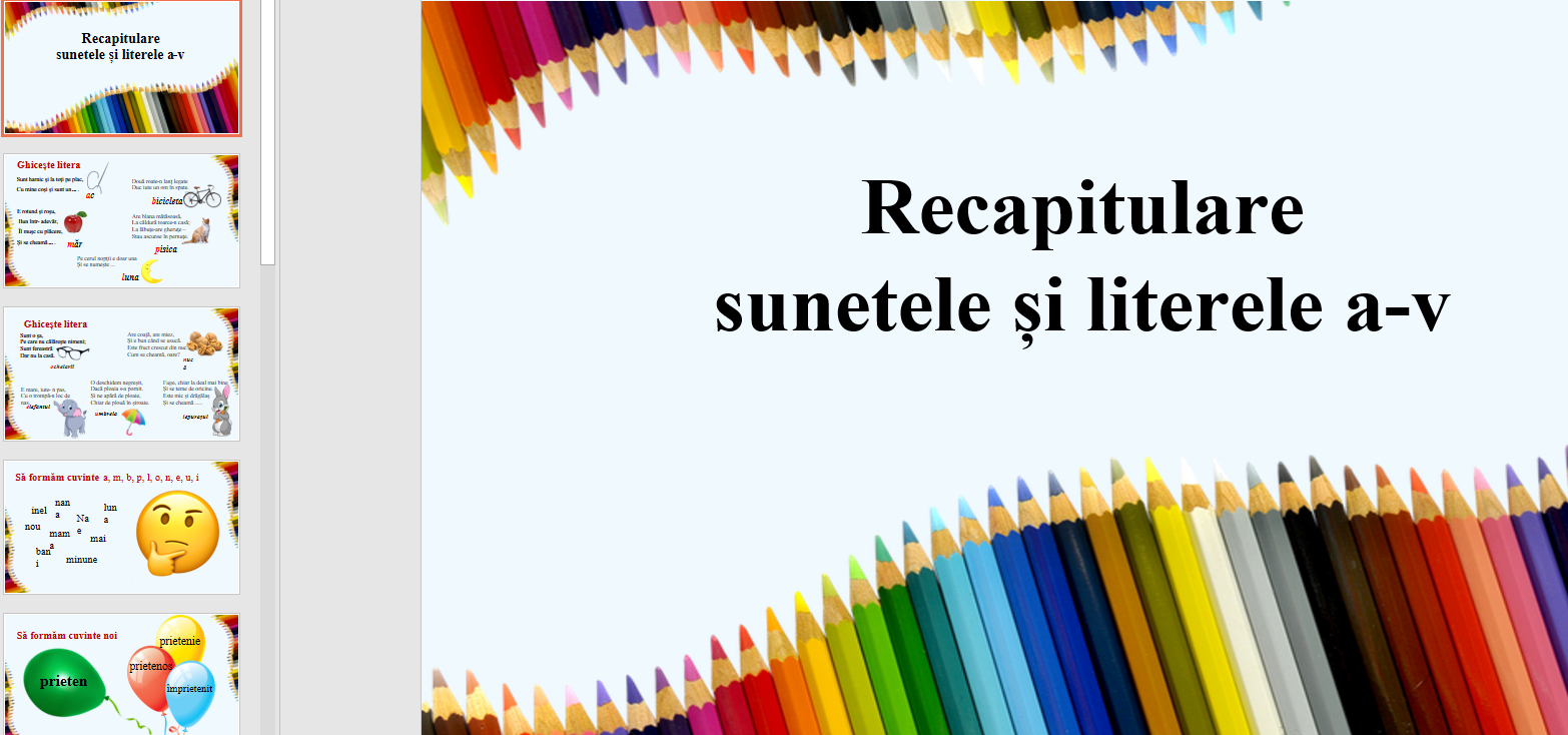 L.Lit.Română. Clasa I-âi. Recapitulare literele a-v [fișier .PPTX]