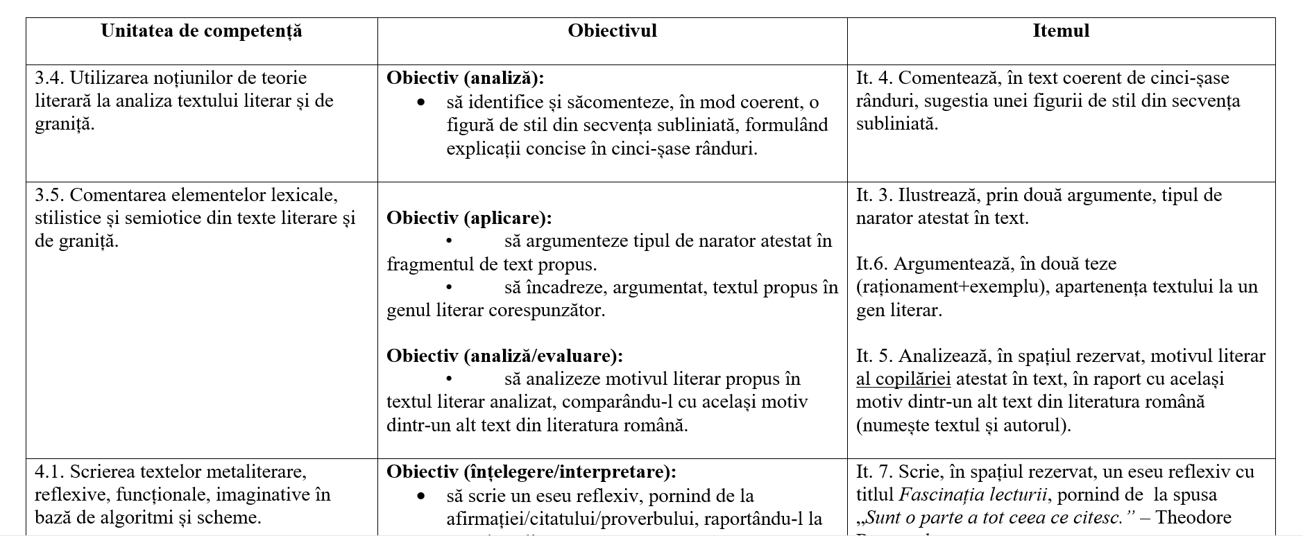 Pun la dispoziție două modele complete de teză, fiecare construită pe baza unui fragment epic și a șapte exerciții cu dificultate variată: sinonime contextuale, sens propriu/figurat, tipul de narator, figură de stil, motiv literar, apartenența la genul literar și eseu structurat.